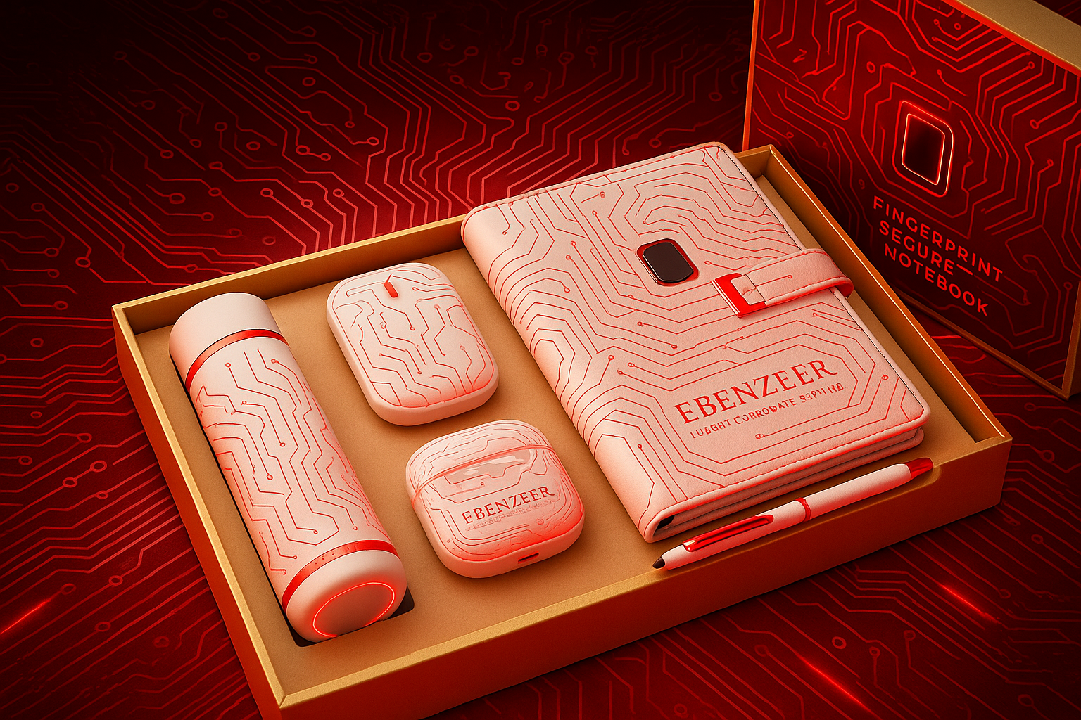 Fingerprint Secure Diary – White with a red band and a fingerprint symbol, highlighting both luxury and innovation.